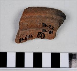 | Description / विवरण | Fragment of rim a vase of red ware with out turned rim, concave neck and oblique sides, showing rough surface. |