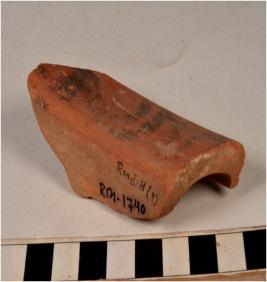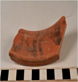 | Description / विवरण | A fragment of a rim of red ware with fland rim, painted with black showing loop band internally oblique sides of medium fabric. |
