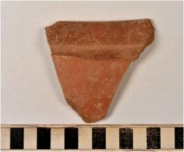 | Description / विवरण | A fragment of a bowl of red ware with slightly incurved rim, having ridge tapering sides of medium fabric. |