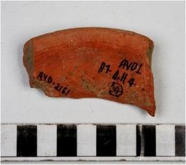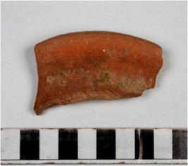 | Description / विवरण | A fragment of a vase of red ware with externally thickened rim of medium fabric. |