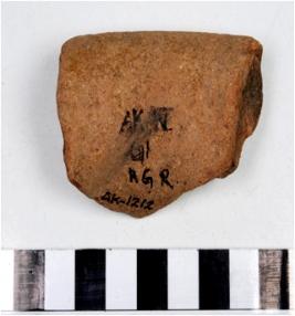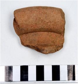 | Description / विवरण | A fragment of a vase of dull red ware with beaded rim, concave neck, tapering sides, of coarse fabric. |