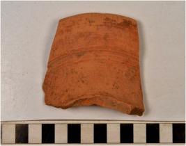 | Description / विवरण | Fragment of rim a pot of red ware with nail headed rim, concave neck and straight sides of medium fabric. |