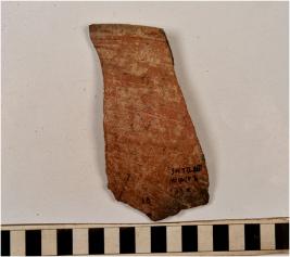| Description / विवरण | A fragment of a bowl of red ware with slightly out turned rim and straight sides of medium fabric and ill fired. |