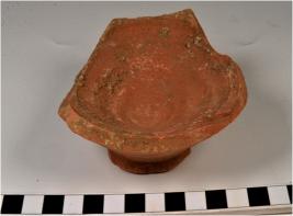 | Description / विवरण | A fragment of base of a bowl of red ware with discular base of medium fabric. |