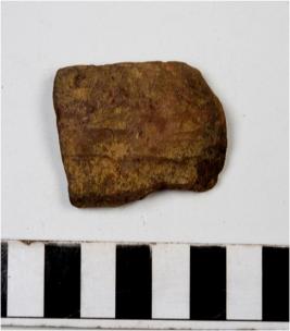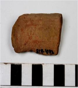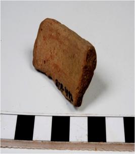 | Description / विवरण | A fragment of a miniature bowl of dull red ware with incurved rim, straight sides of medium fabric and ill fired. |