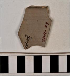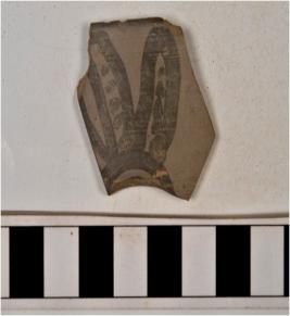 | Description / विवरण | A fragment of a bowl of painted grey ware with featureless rim, straight sides, painted with black showing floral design enclsoed with dots out side of fine fabric. |