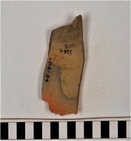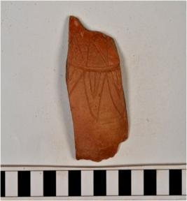 | Description / विवरण | A potsherd of red ware showing incised group of triangles on exterior of fine fabric, ill fired. |