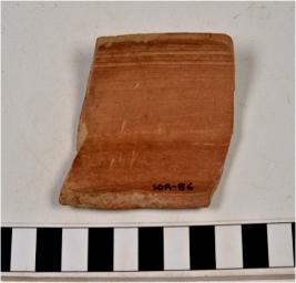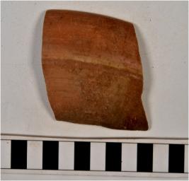 | Description / विवरण | A fragment of a bowl of red ware with featureless rim, having ridge on the surface, tapering sides, treated with brown slip of fine fabric. |