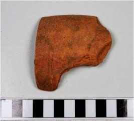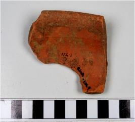 | Description / विवरण | A fragment of a bowl of red ware with featureless rim, straight sides of medium fabric. |