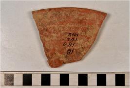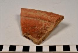 | Description / विवरण | A fragment of a dish of red ware with internally thickened rim, tapering sides, flat base of medium fabric. |