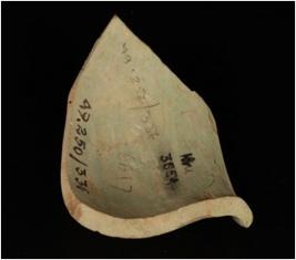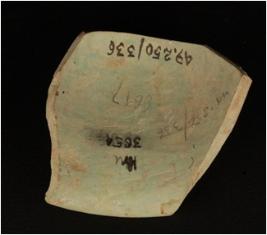 | Description / विवरण | Faience vase with a smooth surface, out curved rim and globular profile. |