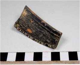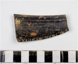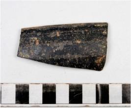 | Description / विवरण | Fragment of rim a bowl of grey ware with incurved rim, treated with black slip of fine fabric. |