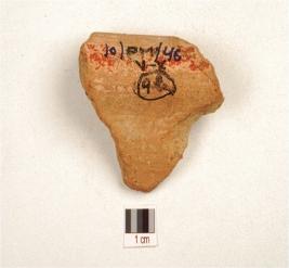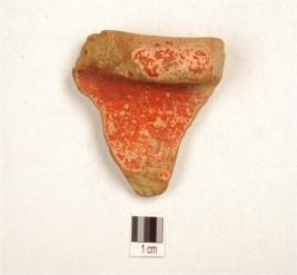 | Description / विवरण | Fragment of a vase of red ware with out curved rim, of medium fabric and treated with red slip. |