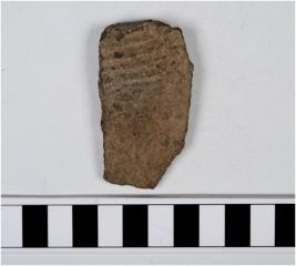 | Description / विवरण | A potsherd of a grey ware showing incised horizontal lines on exterior. |