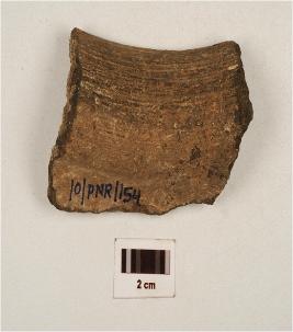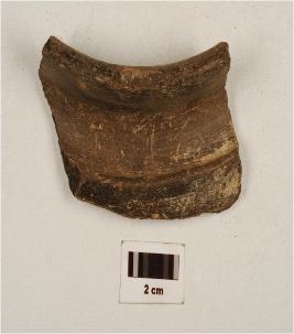 | Description / विवरण | Fragment of a handi of burnished grey ware, slightly in curved rim, carinated shoulder, well baked and medium fabric. |