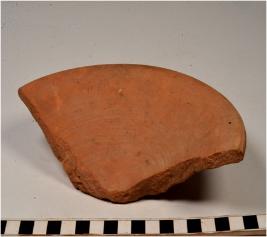 | Description / विवरण | A fragment of a large size of bowl of red ware with flaring rim and broken base of medium fabric, fine texture and well levigated. |