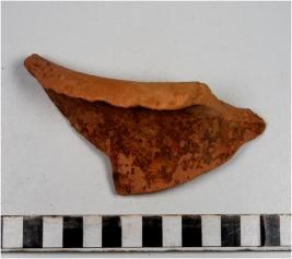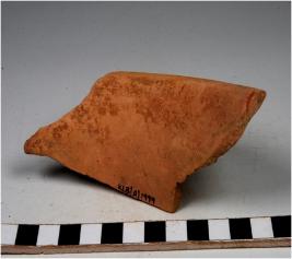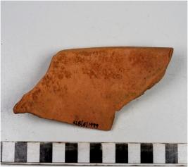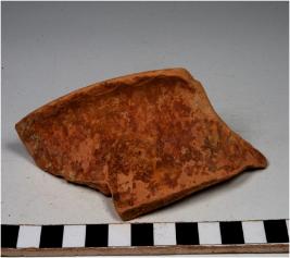 | Description / विवरण | A fragment of a vase of red ware with out turned rim, concave neck, oblique sides of fine fabric. |