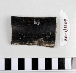 | Description / विवरण | Fragment of rim a vase of black ware with out turned thickened rim, straight sides treated with burnished technique. |