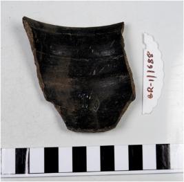 | Description / विवरण | Fragment of rim a bowl of black and red ware with slightly out turned rim, concave neck, globular body, tapering sides, treated with burnished technique. |
