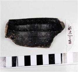 | Description / विवरण | Fragment of rim a bowl of black ware with out turned rim, straight sides, spherical body. |