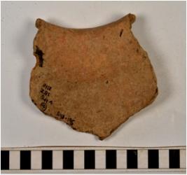 | Description / विवरण | A fragment of a pot of red ware with out turned rim, concave neck, oblique sides of medium fabric and ill fired. |