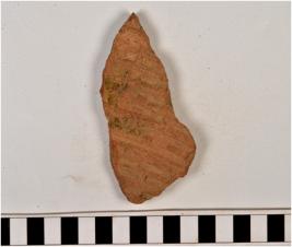 | Description / विवरण | A potsherd of red ware having grooved horizontal lines on the surface, of coarse fabric. |