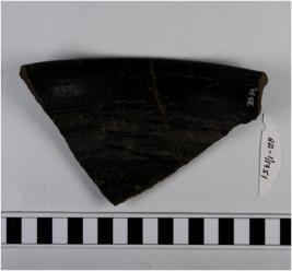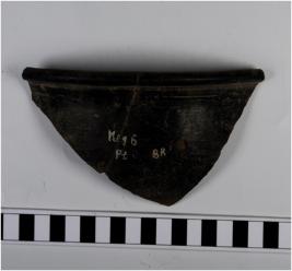 | Description / विवरण | Fragment of rim a wide mouthed bowl of black ware out turned thickened rim and tapering sides. |