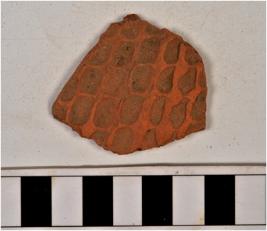 | Description / विवरण | A potsherd of red ware having rows of incised square design, of medium fabric. |