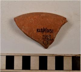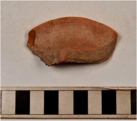 | Description / विवरण | A fragment of a miniature vase of red ware with out turned rim, concave neck and oblique sides of medium fabric. |