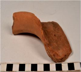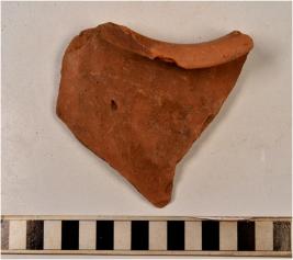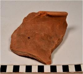 | Description / विवरण | A fragment of a vase of red ware with flared rim, concave neck, tapering sides of medium fabric. |