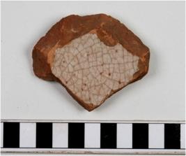 | Description / विवरण | A fragment of a centre portion of plate having ring base of glazed ware showing white crazy surface of medium fabric. |
