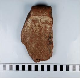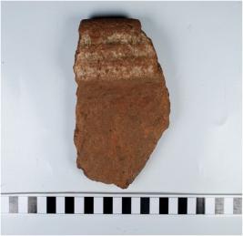 | Description / विवरण | Fragment of rim a thick basin of red ware with vertical rim, straight sides, of coarse fabric. |
