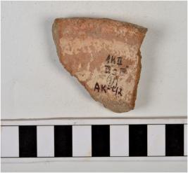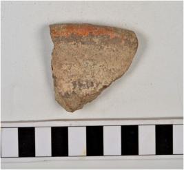 | Description / विवरण | Fragment of rim a pot of dull red ware with slightly incurved rim, vertical neck, tapering sides. |