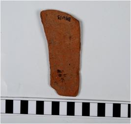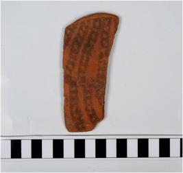 | Description / विवरण | A potsherd of red ware painted with black showing group of chain design on the exterior surface. |