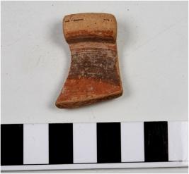| Description / विवरण | Fragment of rim a vase of red ware with beaded rim, concave neck, oblique sides and painted with black showing horizontal band on exterior. |