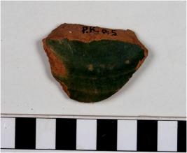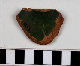 | Description / विवरण | A potsherd of glazed ware having greenish inner surface of both sides of medium fabric fine texture. |