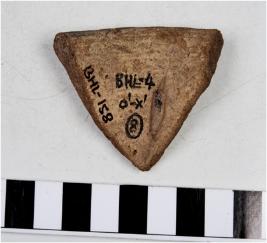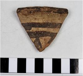 | Description / विवरण | Fragment of rim a vase of grey ware with incurved rim, concave neck, tapering sides, painted with black showing horizontal lines. |