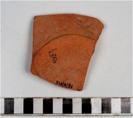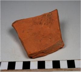 | Description / विवरण | A fragment of a base of red ware with disc base of medium fabric. |