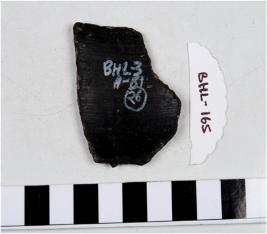 | Description / विवरण | A potsherd of black ware with broken rim. |