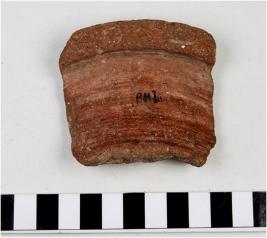 | Description / विवरण | Fragment of rim a vase of red ware with out turned rim concave neck straight sides. |