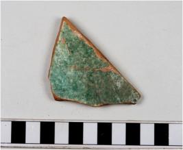 | Description / विवरण | A potsherd of glazed ware having greenish colour out side and fine fabric. |