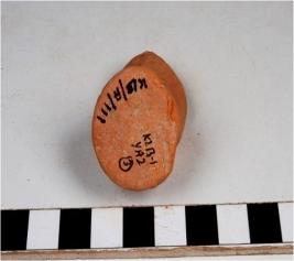 | Description / विवरण | A fragment of a base of red ware with button base of fine fabric. |