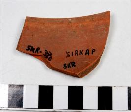 | Description / विवरण | A fragment of a bowl of red ware with featureless rim, tapering sides of fine fabric. |