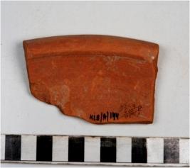 | Description / विवरण | A fragment of a bowl of red ware with nail headed rim, tapering sides of fine fabric. |