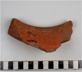 | Description / विवरण | A fragment of a vase of red ware with flanged rim, oblique sides of fine fabric. |