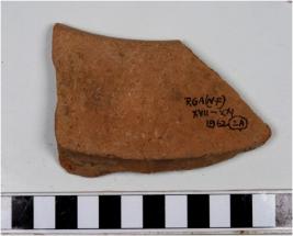 | Description / विवरण | Fragment of rim a bowl of red ware with featureless rim, straight sides of medium fabric. |