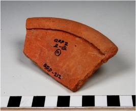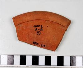 | Description / विवरण | A fragment of a bowl of red ware with folded rim, straight sides of medium fabric. |