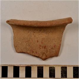 | Description / विवरण | A fragment of a bowl of red ware with flanged rim, straight sides of medium fabric. |