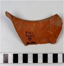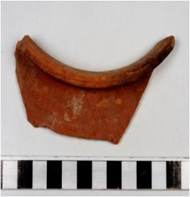 | Description / विवरण | A fragment of a pot of red ware with out turned rim, oblique sides of fine fabric and ill fired. |