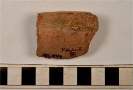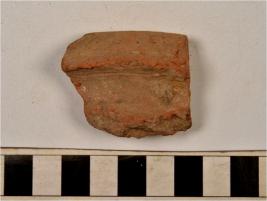 | Description / विवरण | A fragment of a vase of red ware with externally thickened rim, concave neck, oblique sides of medium fabric. |